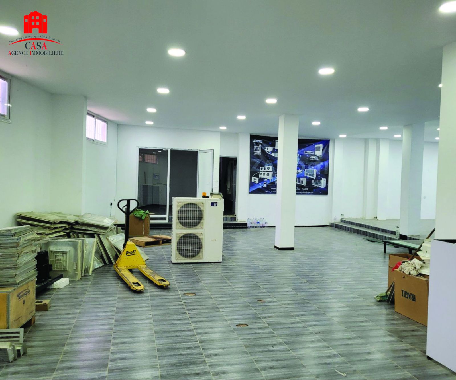 À Cheraga, sur la route de Ain Benian, Casa Immo propose à la location un local d’une superficie de 237m². Ce local est équipé d’un rideau et bénéficie d’une hauteur de plafond de 3,5 mètres, ainsi que d’installations sanitaires. Il est idéalement adapté pour diverses activités telles que la vente de céramique ou de véhicules, un atelier de confection, ou toute autre entreprise.