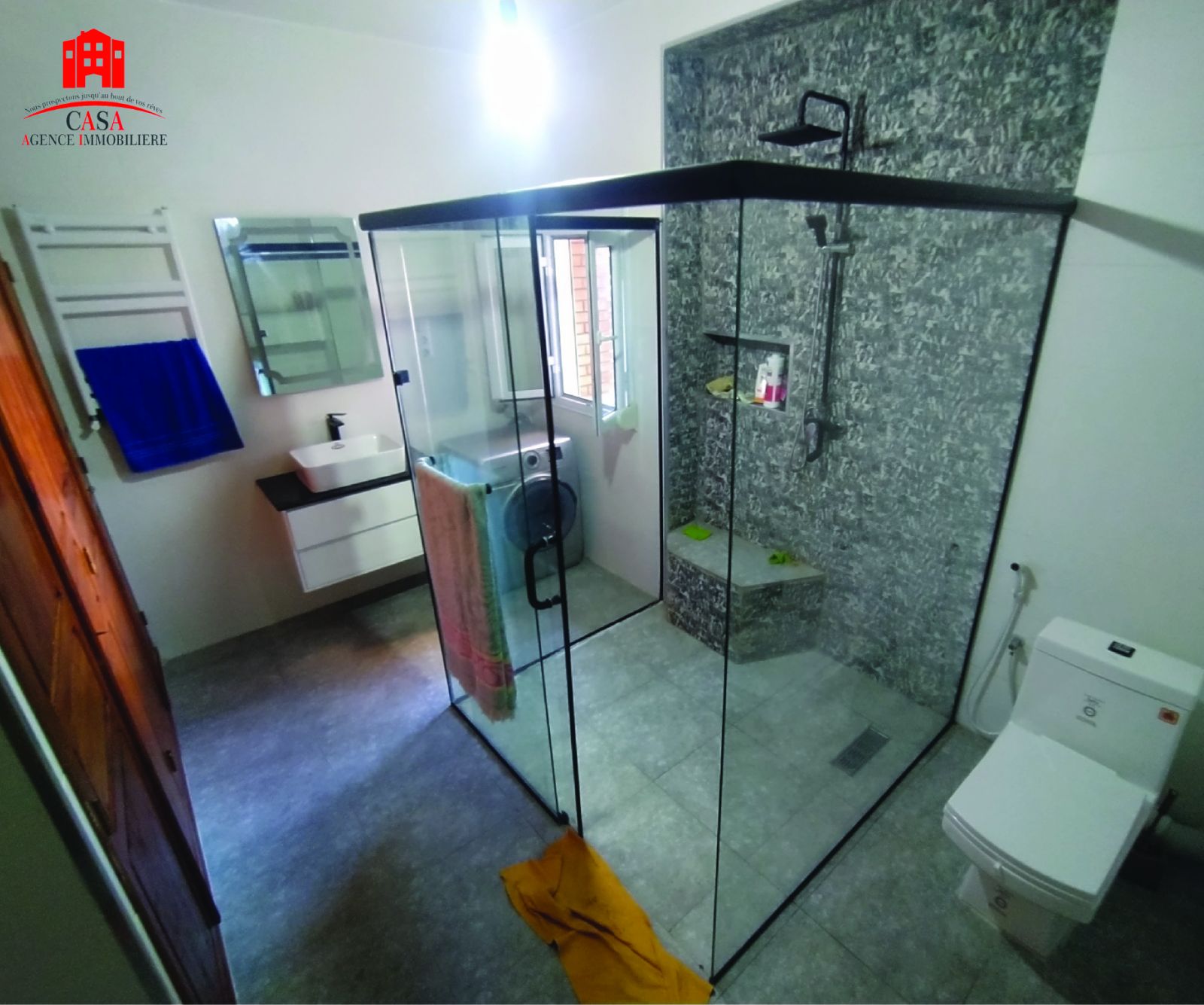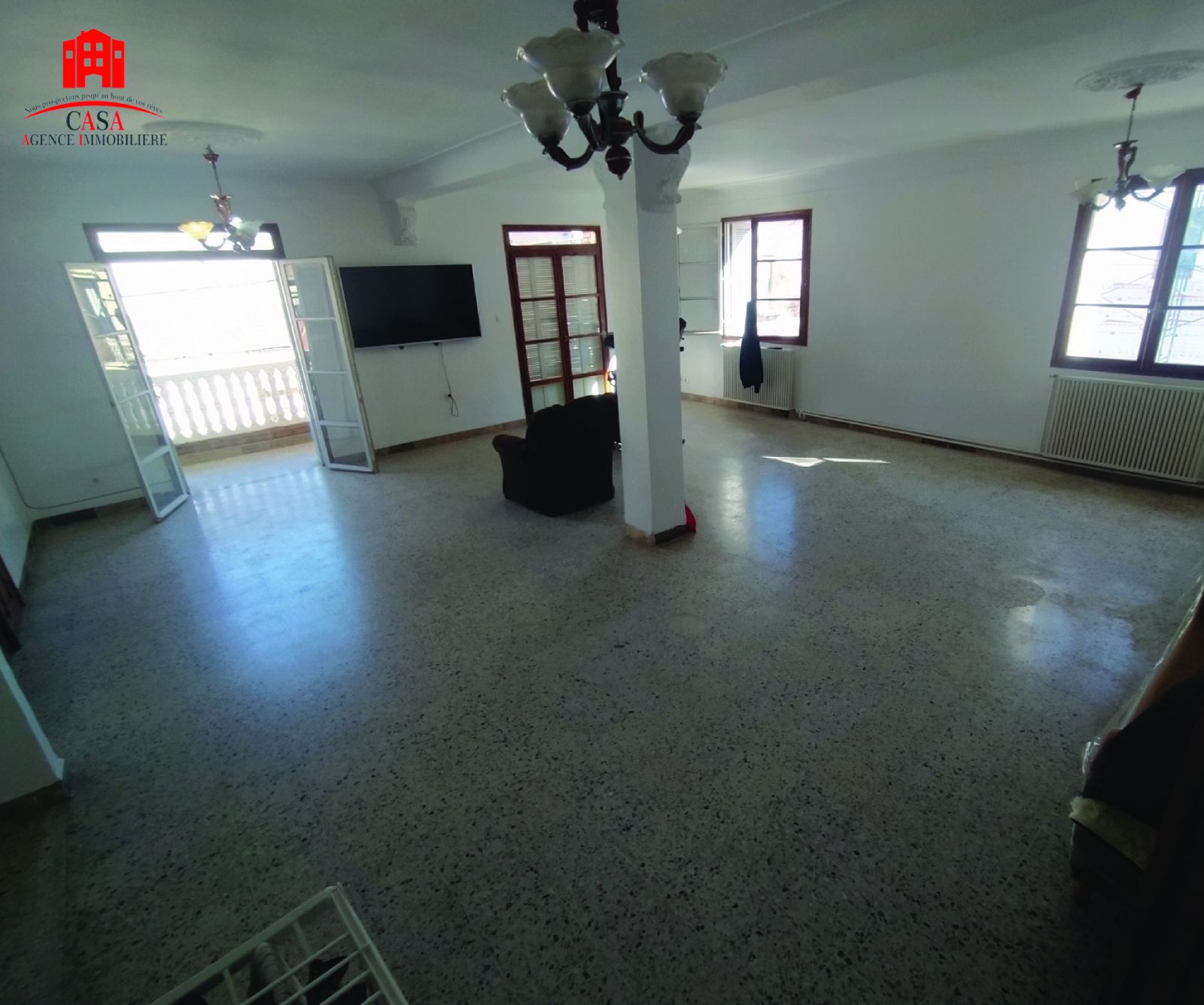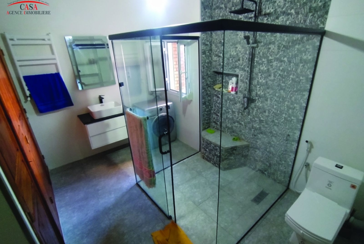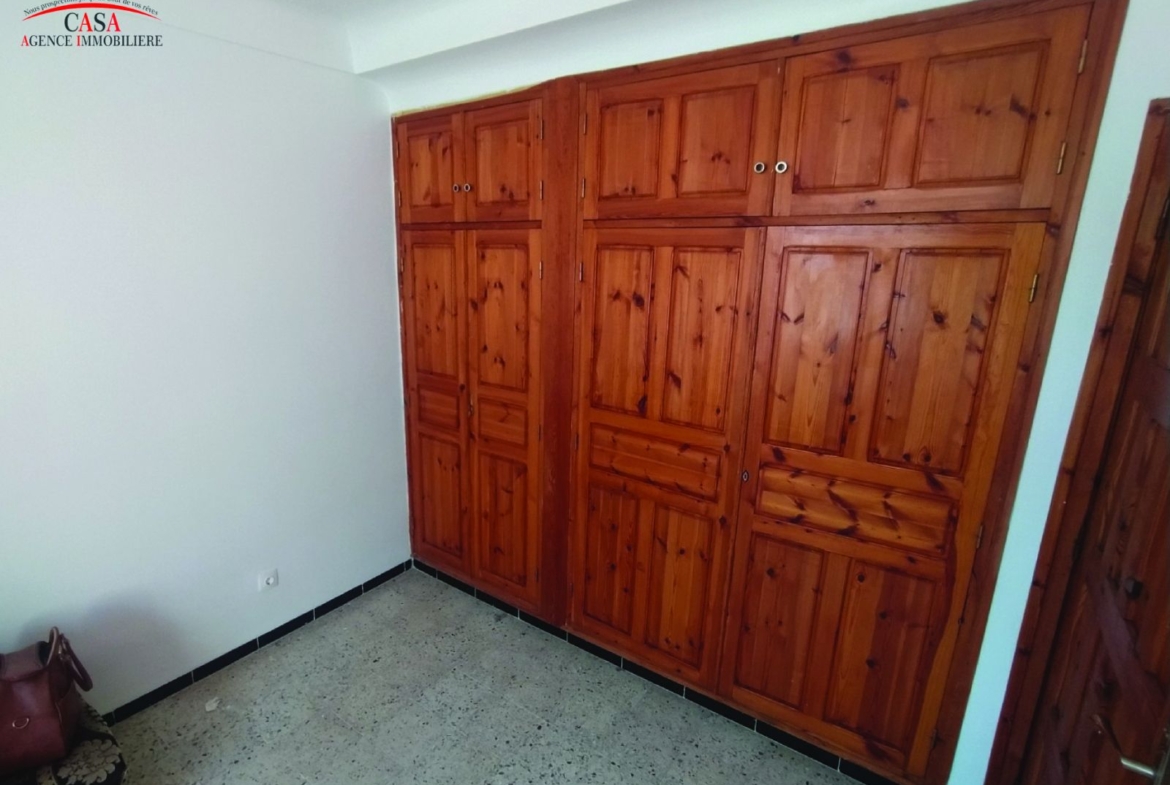 Staoueli, centre ville, casa immo met en location un niveau de villa de type F3 commercial au 1er étage d’une superficie de 200 m² avec une façade qui donne sur la route commerciale – spacieux – ensoleillé et avec toutes commodités: une cuisine aménagée + chauffage central + climatisation + internet “FIBRE” et une SDB refaite a neuf avec douche italienne et balcon et dressing dans chaque chambre, idéal pour habitation ou pour profession libérale : notaire – cabinet médical – architecte…